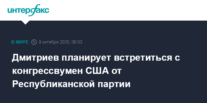 Дмитриев планирует встретиться с конгрессвумен США от Республиканской партии