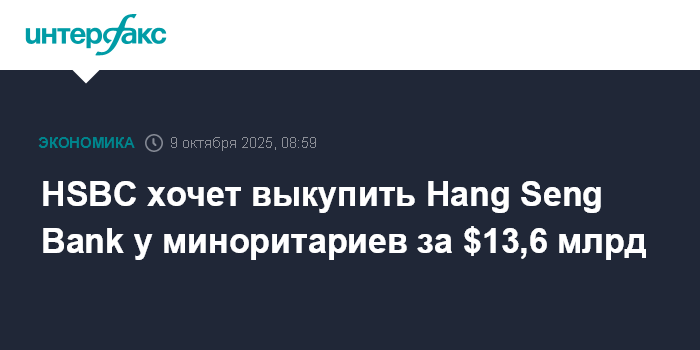 HSBC хочет выкупить Hang Seng Bank у миноритариев за $13,6 млрд