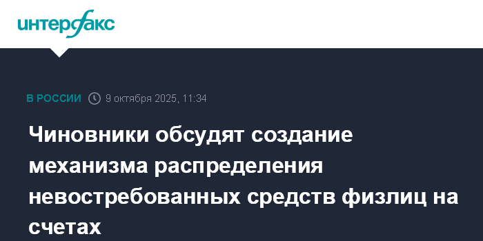 Москва. 9 октября. INTERFAX.RU - Минфин, Федеральная антимонопольная служба при участии Банка России подготовят предложения по созданию специального механизма конкурентного распределения невостребованных средств физических лиц на текущих счетах и срочных вкладах в кредитных организациях, говорится в утвержденном правительством Национального плане развития конкуренции на 2026-2030 годы.