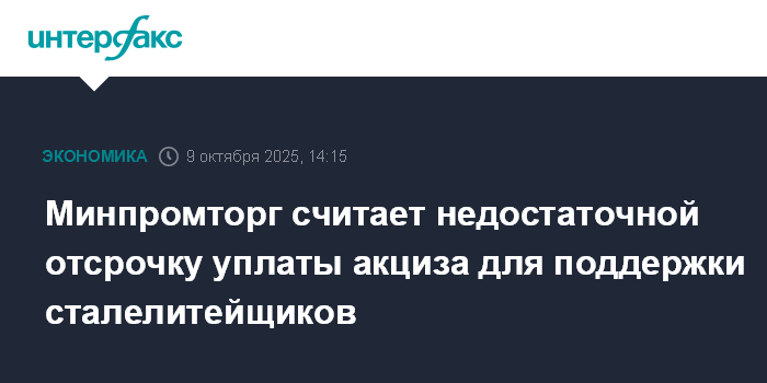 Минпромторг считает недостаточной отсрочку уплаты акциза для поддержки сталелитейщиков