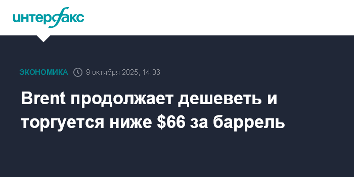 Brent продолжает дешеветь и торгуется ниже $66 за баррель