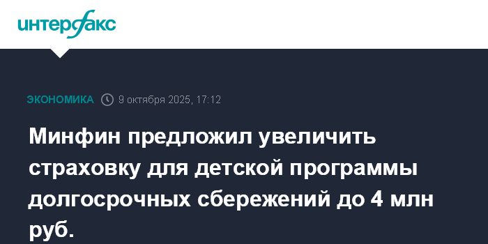 Минфин предложил увеличить страховку для детской программы долгосрочных сбережений до 4 млн руб.