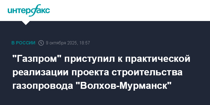 Москва. 9 октября. INTERFAX.RU - "Газпром" приступил к практической реализации проекта строительства газопровода "Волхов-Мурманск", сообщила компания по итогам подписания первой пятилетней программы развития газоснабжения и газификации Мурманской области - на 2026-2030 годы.