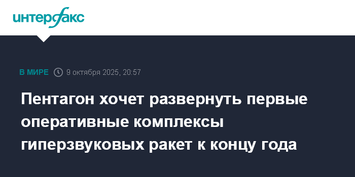 Пентагон хочет развернуть первые оперативные комплексы гиперзвуковых ракет к концу года