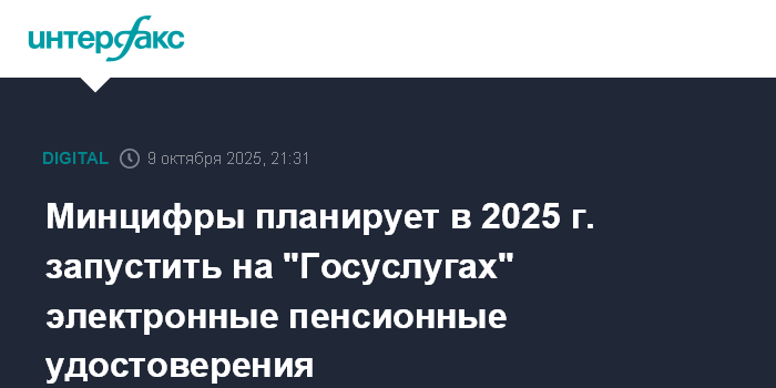 Минцифры планирует в 2025 г. запустить на "Госуслугах" электронные пенсионные удостоверения