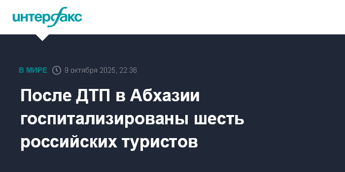 Москва. 9 октября. INTERFAX.RU - Шесть российских туристов, получившие травмы в результате ДТП в поселке Акармара в Ткуарчалском районе Абхазии, доставлены в республиканскую больницу в Сухум, где им предоставляют всю необходимую медпомощь, сообщает абхазское министерство здравоохранения.