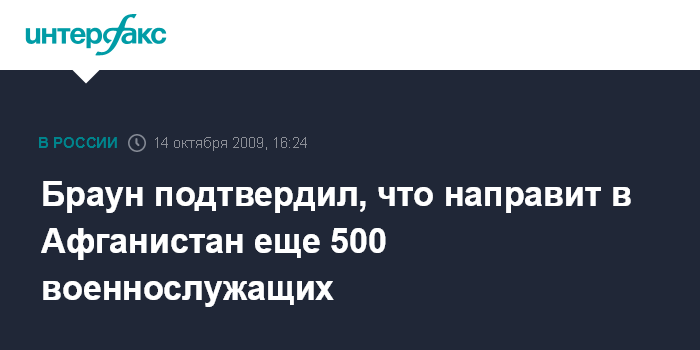 Москва. 14 октября. INTERFAX.RU - Премьер-министр Великобритании Гордон Браун, объявил в среду членам парламента о намерении направить в Афганистан дополнительно 500 военнослужащих. Одновременно он подчеркнул, что британский контингент в Афганистане будет увеличен только в случае соблюдения ряда условий, а именно - обеспечения подкрепления всей необходимой экипировкой, увеличения афганских контингентов других членов НАТО, а также ускорения темпов обучения личного состава афганской армии.