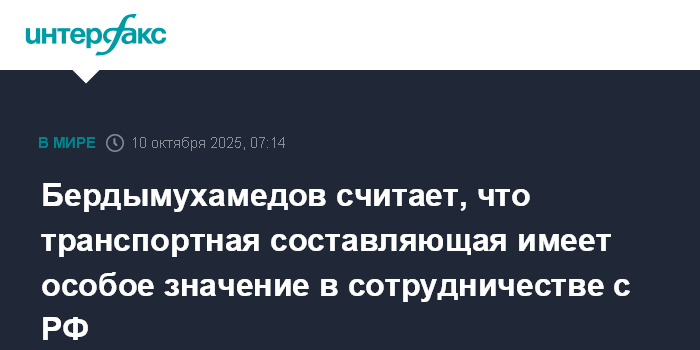 Бердымухамедов считает, что транспортная составляющая имеет особое значение в сотрудничестве с РФ