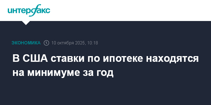 Москва. 10 октября. INTERFAX.RU - Ставки долгосрочных ипотечных кредитов в США снизились на прошлой неделе и находятся на самых низких отметках за последний год, сообщает государственная ипотечная корпорация Freddie Mac.