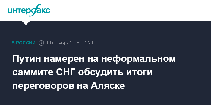 Путин намерен на неформальном саммите СНГ обсудить итоги переговоров на Аляске