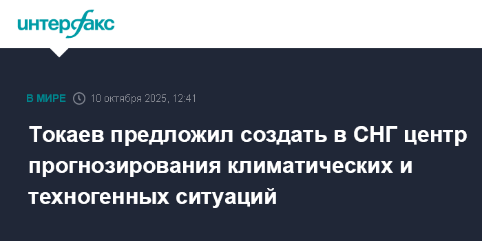 Москва. 10 октября. INTERFAX.RU - Президент Казахстана Касым-Жомарт Токаев на саммите СНГ в Душанбе предложил создать Региональный центр прогнозирования чрезвычайных климатических и техногенных ситуаций. Об этом сообщает его пресс-служба.