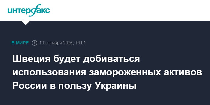 Швеция будет добиваться использования замороженных активов России в пользу Украины