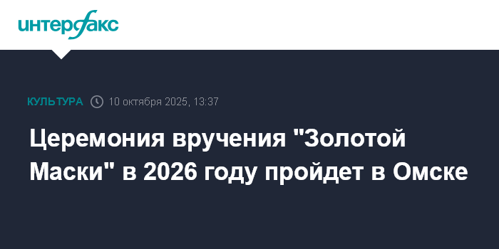 Москва. 10 октября. INTERFAX.RU - Церемония вручения XXXII национальной театральной премии "Золотая Маска" в 2026 году пройдет в Омске, сообщили в пресс-службе фестиваля и премии.