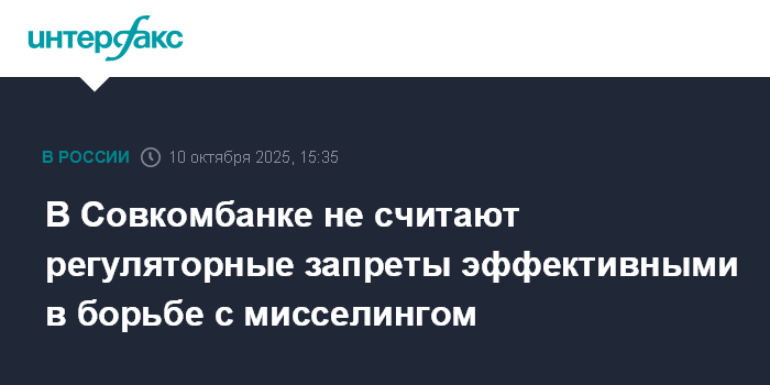В Совкомбанке не считают регуляторные запреты эффективными в борьбе с мисселингом