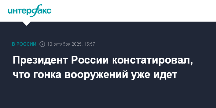 Москва. 10 октября. INTERFAX.RU - Президент России Владимир Путин считает, что в мире уже идет гонка вооружений.