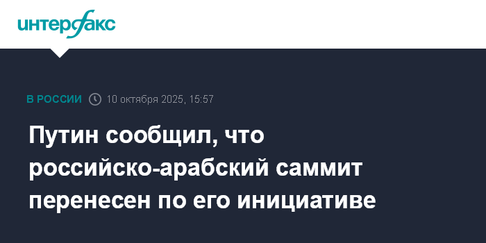 Саммит "Россия - Арабский мир" должен был пройти 15 октября. Однако в четверг после телефонного разговора Путина с председательствующим в настоящее время в Лиге арабских государств премьером Ирака Мухаммедом Судани было решено отложить мероприятие из-за начала активной фазы реализации плана президента США Дональда Трампа по нормализации в секторе Газа.