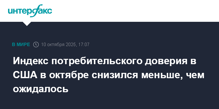 Индекс потребительского доверия в США в октябре снизился меньше, чем ожидалось