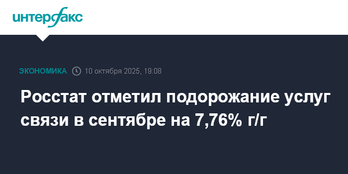 Росстат отметил подорожание услуг связи в сентябре на 7,76% г/г