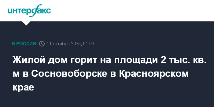 "В 02:03 (по местному времени; 22:03 пятницы по мск - ИФ) 11.10.2025 поступило сообщение о загорании квартиры в г. Сосновоборске. Площадь пожара 2000 кв. м", - говорится в сообщении.