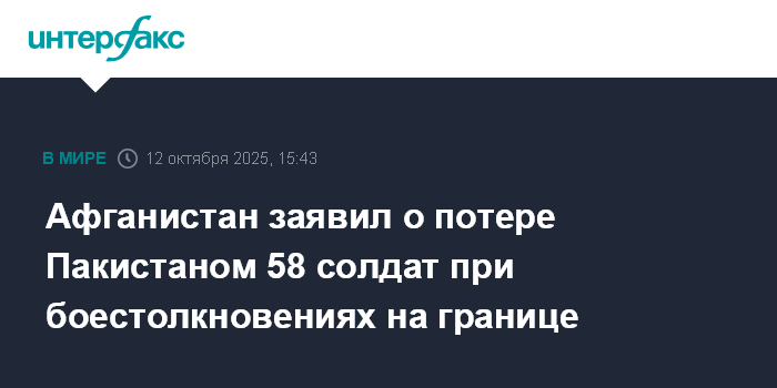Москва. 12 октября. INTERFAX.RU - Афганские власти заявили о потере Пакистаном 58 военных в ходе ночной пограничной операции, сообщило агентство Associated Press.