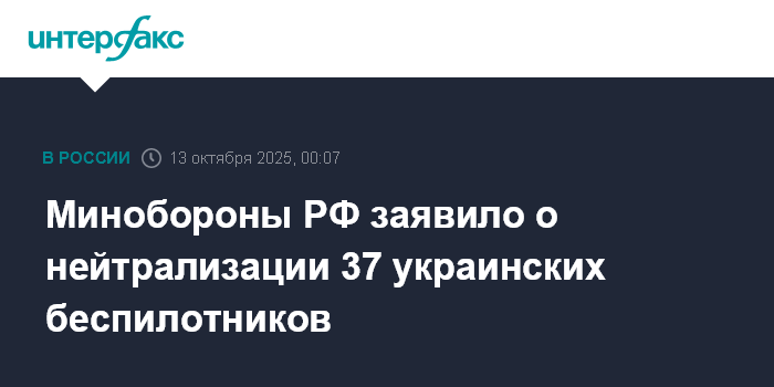 Минобороны РФ заявило о нейтрализации 37 украинских беспилотников