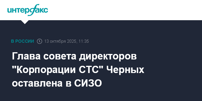 Глава совета директоров "Корпорации СТС" Черных оставлена в СИЗО