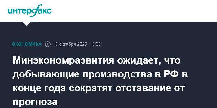Минэкономразвития ожидает, что добывающие производства в РФ в конце года сократят отставание от прогноза