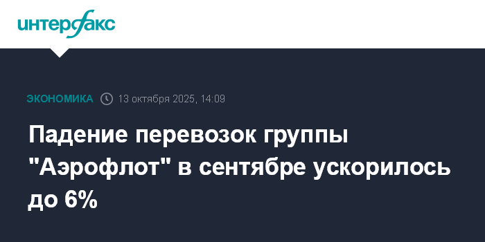 Падение перевозок группы "Аэрофлот" в сентябре ускорилось до 6%