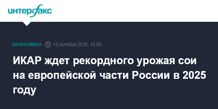 ИКАР ждет рекордного урожая сои на европейской части России в 2025 году