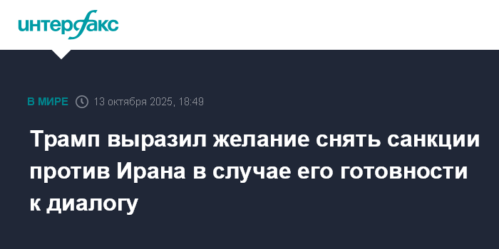 "Я полагаю, что Иран согласится на такое. Они потерпели поражение, им нужна помощь. Серьезные санкции, вы знаете, внушительные санкции. Я был бы рад отменить санкции, если они готовы к диалогу", - сказал Трамп журналистам в Шарм-эш-Шейхе.