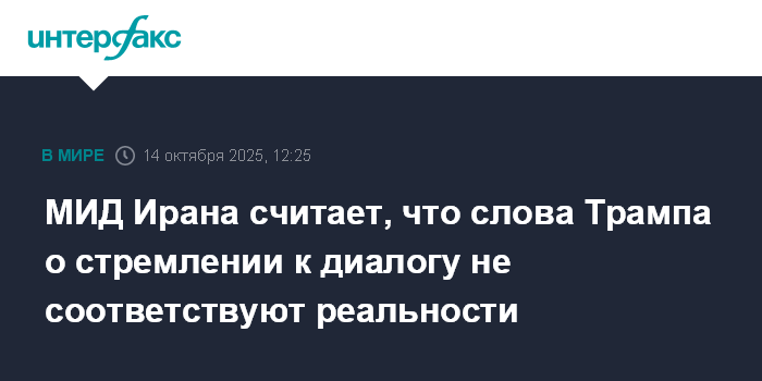 Москва. 14 октября. INTERFAX.RU - Утверждения президента США Дональда Трампа о желании мира и диалога с Тегераном контрастируют с предпринимаемыми Вашингтоном реальными шагами, заявили в МИД Ирана.