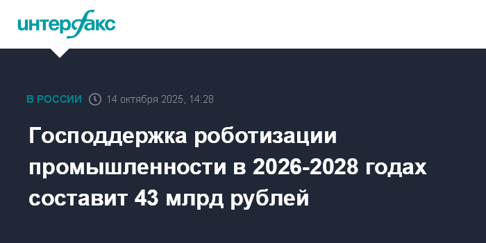 Господдержка роботизации промышленности в 2026-2028 годах составит 43 млрд рублей
