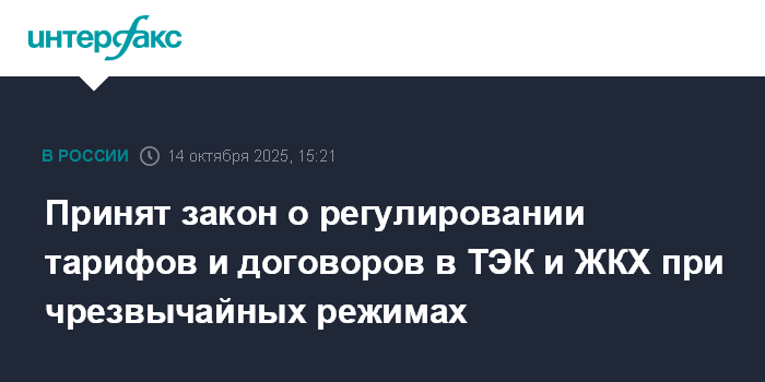 Принят закон о регулировании тарифов и договоров в ТЭК и ЖКХ при чрезвычайных режимах