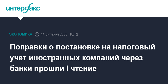Поправки о постановке на налоговый учет иностранных компаний через банки прошли I чтение