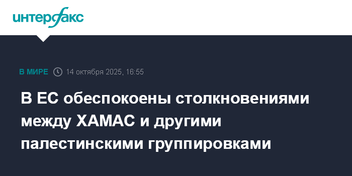 "Европейский союз обеспокоен сообщениями о нескольких погибших в Газе в результате столкновений между ХАМАС и другими группировками. Мы призываем все стороны к сдержанности и недопущению действий, которые могли бы угрожать прекращению огня", - сказал пресс-секретарь на брифинге в Брюсселе во вторник.