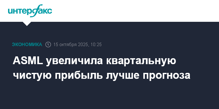 Москва. 15 октября. INTERFAX.RU - Нидерландская ASML Holding NV, ведущий мировой производитель оборудования для выпуска чипов, в третьем финансовом квартале увеличила чистую прибыль на 2,3%, что превзошло ожидания рынка.