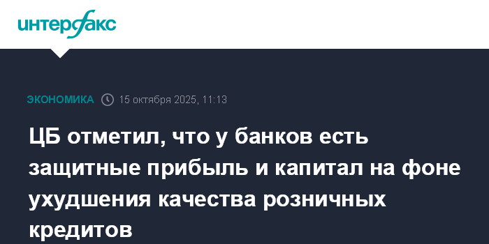 ЦБ отметил, что у банков есть защитные прибыль и капитал на фоне ухудшения качества розничных кредитов
