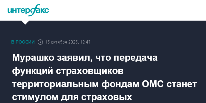 Москва. 15 октября. INTERFAX.RU - Глава Минздрава РФ Михаил Мурашко считает, что предоставление губернаторам возможности передавать территориальным фондам обязательного медицинского страхования (ОМС) полномочия частных страховых медорганизаций не приведет к злоупотреблению властью со стороны губернаторов и послужит стимулом для страховых медорганизаций усилить свою работу.