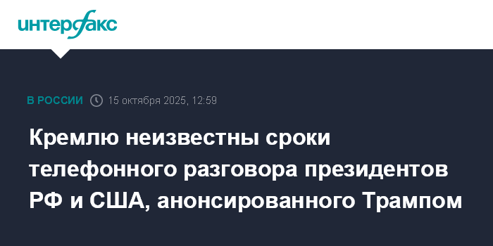 Кремлю неизвестны сроки телефонного разговора президентов РФ и США, анонсированного Трампом