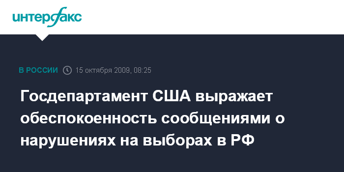 Москва. 14 октября. INTERFAX.RU - Соединенные Штаты обеспокоены информацией о нарушениях, которые имели место на муниципальных выборах в России, заявил официальный представитель госдепартамента США Филипп Кроули на брифинге в Вашингтоне в среду.