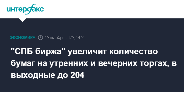 "СПБ биржа" увеличит количество бумаг на утренних и вечерних торгах, в выходные до 204