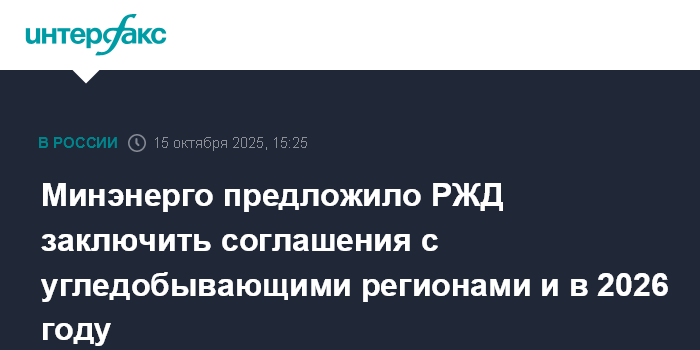 Минэнерго предложило РЖД заключить соглашения с угледобывающими регионами и в 2026 году
