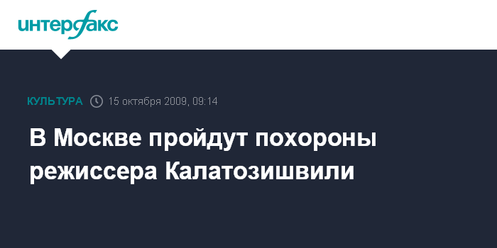 Москва. 14 октября. INTERFAX.RU - Кинорежиссер Михаил Калатозишвили будет похоронен в четверг на Новодевичьем кладбище в Москве.