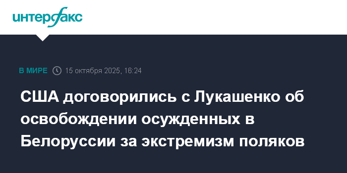 США договорились с Лукашенко об освобождении осужденных в Белоруссии за экстремизм поляков