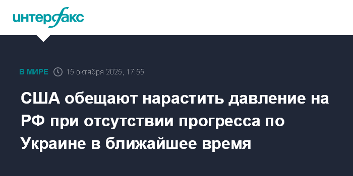 Москва. 15 октября. INTERFAX.RU - США и их союзники по НАТО прибегнут к дальнейшим мерам против России, если не увидят успехов в украинском урегулировании в ближайшее время, заявил в среду шеф Пентагона Пит Хегсет.