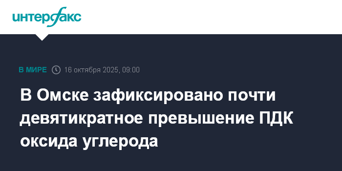 "По информации ФГБУ "Обь-Иртышское УГМС", 15 октября (...) на стационарном посту в Центральном административном округе Омска (ул. Багратиона) зафиксировано превышение ПДК оксида углерода в 8,7 раза", - говорится в сообщении.