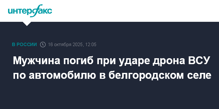Москва. 16 октября. INTERFAX.RU - Губернатор Белгородской области Вячеслав Гладков сообщил о гибели мирного жителя при атаке украинского дрона в селе Устинка Белгородского района в четверг.