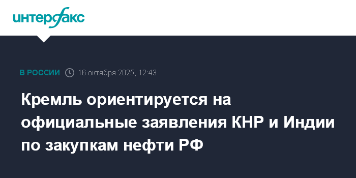 Кремль ориентируется на официальные заявления КНР и Индии по закупкам нефти РФ