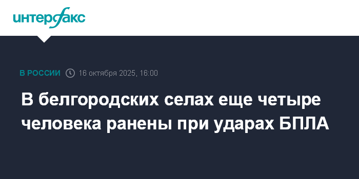 Москва. 16 октября. INTERFAX.RU - В Белгородской области еще четыре человека ранены в результате новых атак беспилотников, сообщил губернатор Вячеслав Гладков.