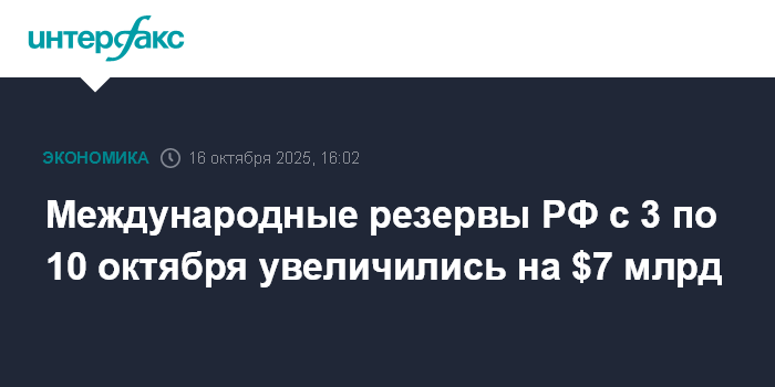 Международные резервы РФ с 3 по 10 октября увеличились на $7 млрд
